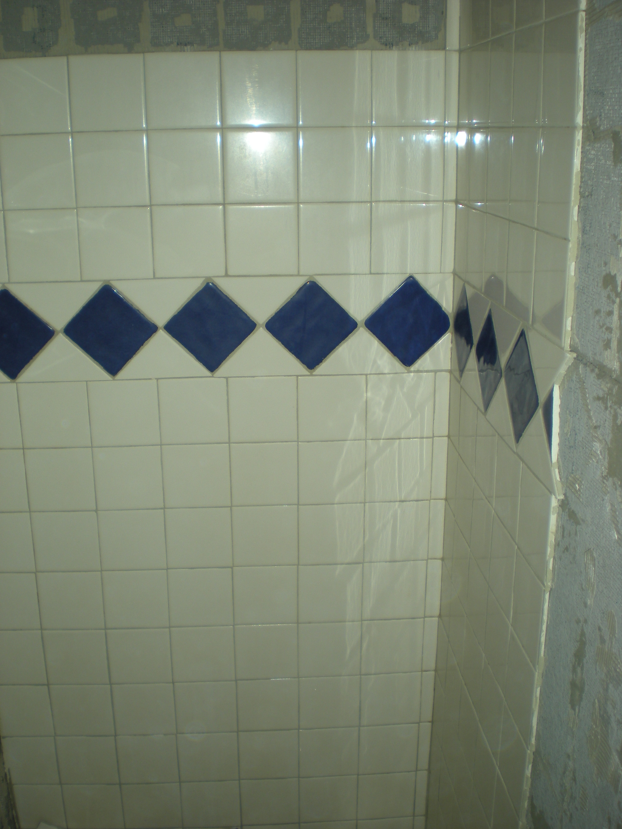 New! Same angle. the shower is now where that towel rack is. we knocked that wall down and moved it out. and built a wall in the opening of the old shower. Now we have a separate shower and toilet.